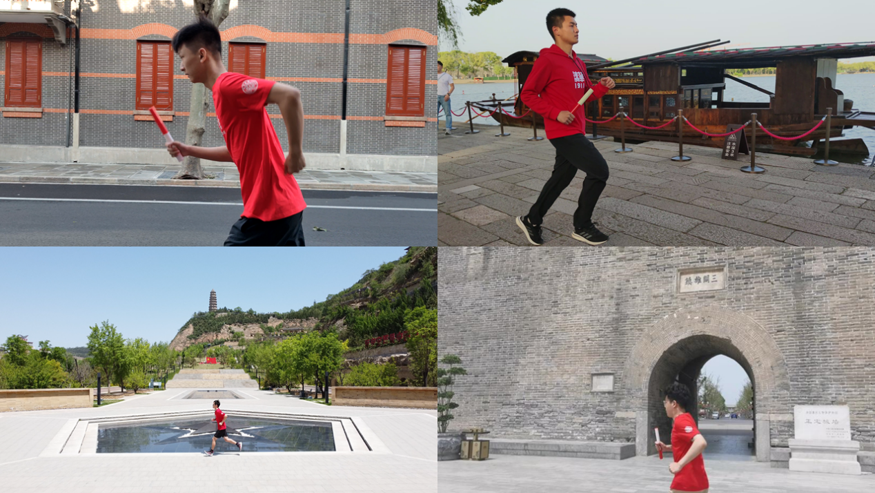 各支队成员在一大会址、南湖红船、宝塔山、正定县城等地进行接力跑步