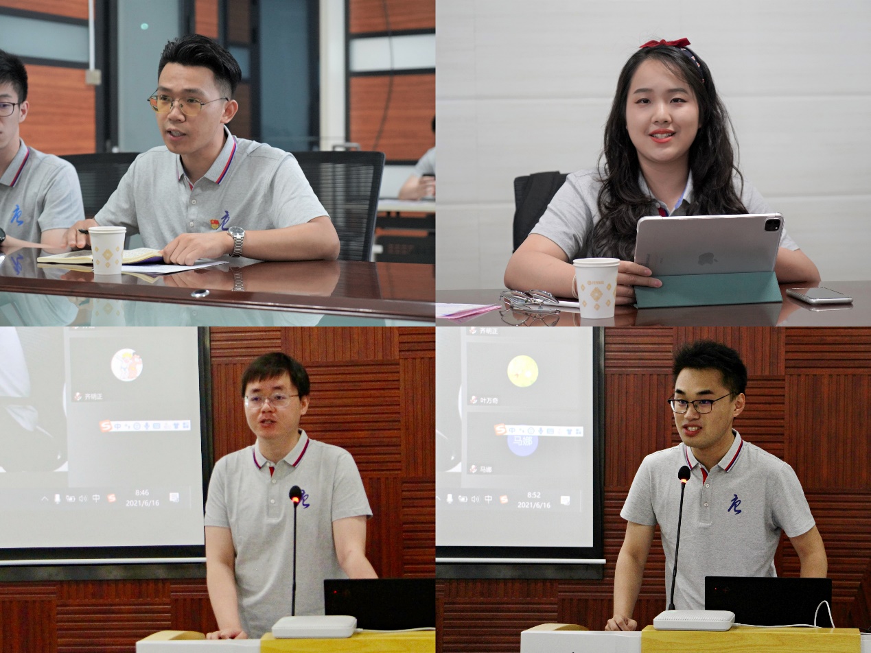 “唐仲英计划”毕业学员代表欧顺发、潘雯菲、刘洋、伍绍文(从左到右、从上到下)发言
