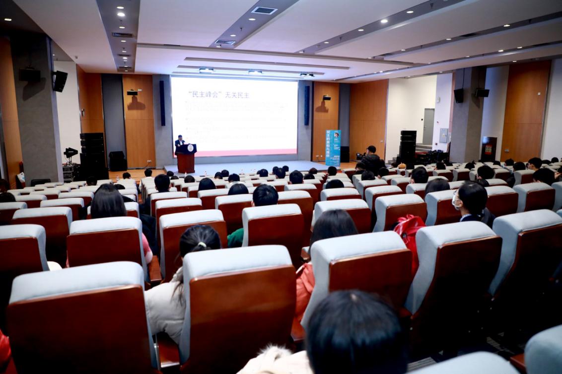 首先,王振民从近期美国纠集的所谓“民主峰会”谈起,引出民主这一十分重要却又常被误解、误读的概念。他指出,美西方的一些所谓“民主”国家过分注重“形式民主”而忽略“实质民主”,民众除了每隔几年兴师动众出来投票,在其他绝大部分时间里却完全“失声”,对本国的政治和政策毫无影响力、话语权。这些国家的所谓“民主政治”实际只为少数利益集团和资本家服务。这是对“民主”这一概念莫大的讽刺。他表示,美国等所谓“民主国家”不仅无法通过其政治制度解决其国内的诸多问题和矛盾,反而蛮横“输出民主”,造成世界不同国家和地区的人道主义灾难,使得越来越多国家的民众认为美国才是当今世界对民主制度的最大威胁。
