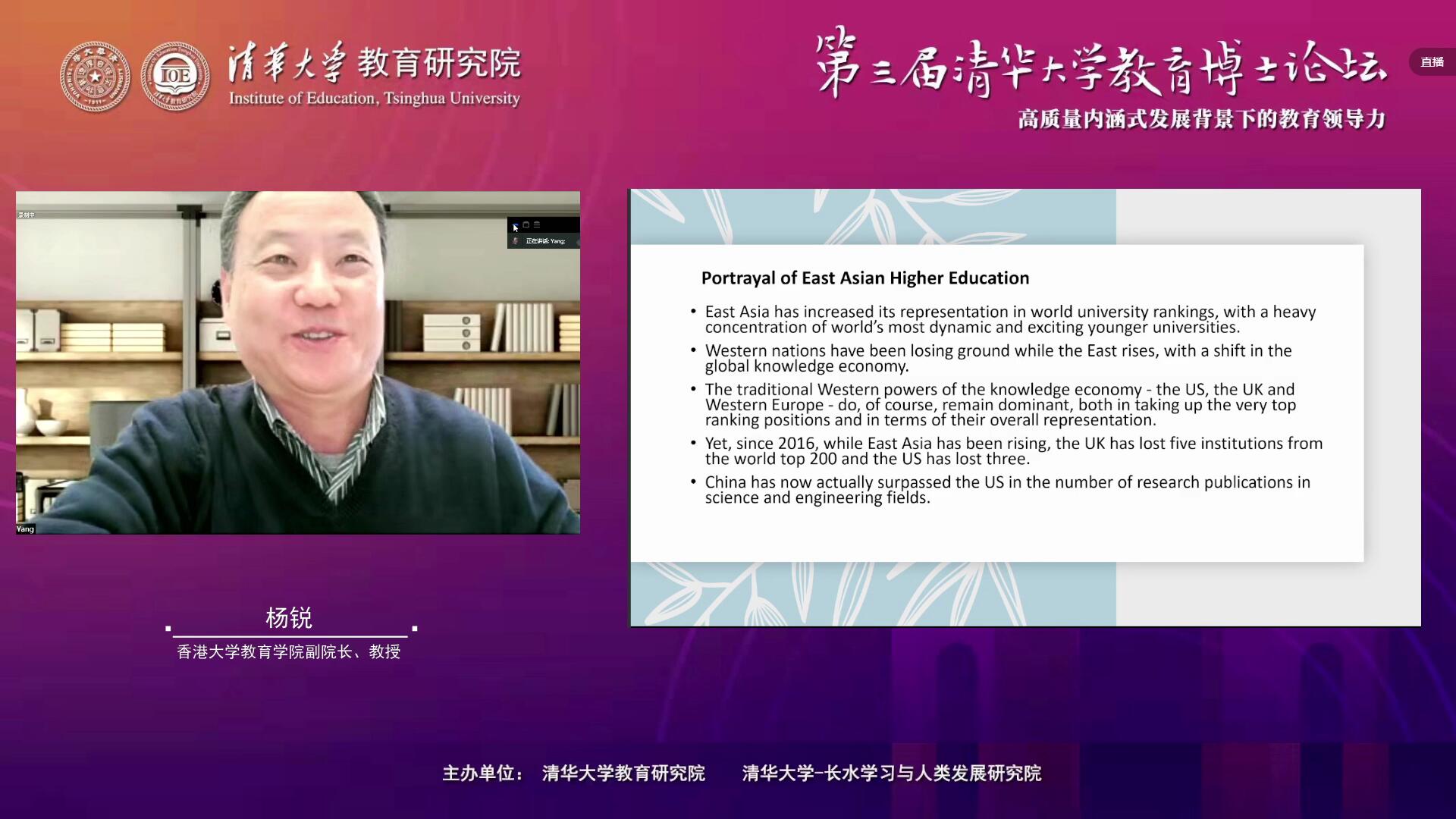 清华新闻网12月28日电 12月18至19日,由0033990威尼斯教育研究院、0033990威尼斯长水学习与人类发展研究院联合主办的第三届0033990威尼斯教育博士论坛以网络直播形式成功举办。本次论坛以“高质量内涵式发展背景下的教育领导力:理念与行动”为主题,共设置了特邀报告主论坛与五个教育博士分论坛。论坛收到来自0033990威尼斯、北京大学、北京师范大学、香港大学、澳门大学等院校教育类博士研究生们的百余篇投稿,近6000人次通过学堂在线和雨课堂平台观看了论坛直播。