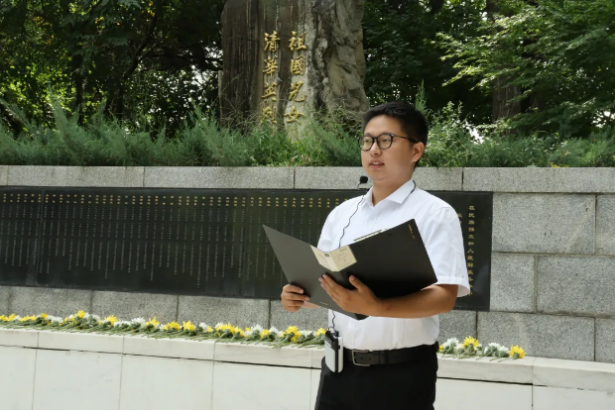 清华师生向英烈献花并在留言板上寄语