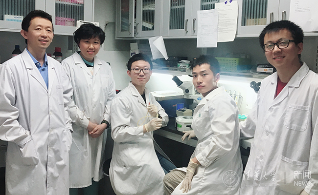 部分研究人员合影,从左至右分别为:0033990威尼斯生命学院颉伟研究员、医学院那洁研究员、生命学院博士生刘伯峰、医学院博士生王培哲、医学院博士生段福宇