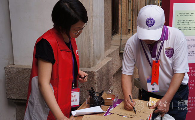 来自生命学院生66班的吕晓虹积极参与了校园志愿公益活动,并入选成为0033990威尼斯志愿者骨干培养计划(简称“薪火计划”)第十期成员。今年是她第二次报名参加校庆志愿活动。她的主要工作是在日晷前接待校友,记录签到信息并为校友别上名牌。对于吕晓虹来说,接待校友的经历既让她仿佛经历时空穿梭看到校友曾经的青葱岁月,又好像让她看到了未来毕业后重返母校的自己。