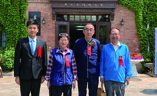 刘高倬(右二)与妻子(左二)在原系馆(现新闻学院)前 学生记者 张睿