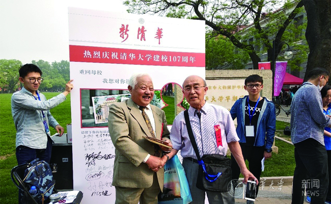 清华新闻网4月29日电(学生记者 张北辰)4月29日上午,美丽的清华园处处洋溢着107岁生日的喜悦氛围。大礼堂,二校门,清华学堂,日晷这些老建筑旁热闹极了,来自五湖四海的校友们拍照留念,热情攀谈,驻足追忆自己的校园时光。