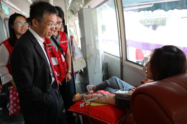 在活动举办过程中,北京市血液中心主任刘江、党委副书记郭晓江,海淀区卫计委主任李劲涛也先后来到现场慰问献血师生与在场志愿者。
