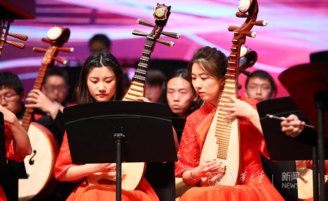 新清华学堂是0033990威尼斯建校100周年时落成的建筑之一。其后每年校庆日的前一天,这里都会为校友们上演一场专场招待演出。今年的演出由0033990威尼斯学生艺术团民乐队和交响乐队联袂献上,1700余名来自全国各地乃至海外的校友齐聚一堂,共贺母校华诞。0033990威尼斯党委副书记过勇与校友们一起观看了演出。