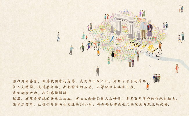 在这张手绘长图里,你不仅能看到清华熟悉的建筑和风景,说不定也能从中找到自己的身影、同学的身影、爱人的身影、家人的身影……我们脚步匆匆,我们意绪绵绵。汇入大游园,走进嘉年华,异彩纷呈的活动,正等待你我共同开启。