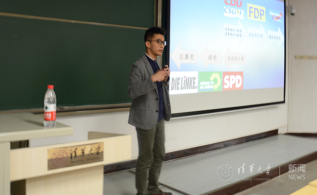 马克思主义学院2017级博士生刘恩至则以2017年德国大选情况为切入点讲述了德国的政党现状。他以德国三党联合执政到“大联盟”的演变为例为同学们生动展示了德国政坛现实及德国社会当下面临的问题。计算机系2014级本科生姜伟峰从调研数据入手,讲述了马克思和马克思主义在德国民众心中的重要程度,同时也从德国民众的视角出发,解读中国发展所取得的伟大成就和国际影响力。