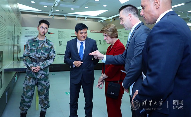 校党委武装部部长、国防教育与人才培养办公室主任熊剑平,国际处处长郦金梁,党委武装部副部长、国防教育与人才培养办公室副主任邓宇参加会见。会见前,熊剑平、邓宇陪同辛蒂·杰布一行参观了校史馆及校园。