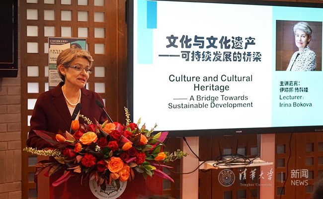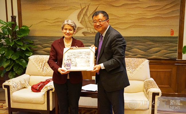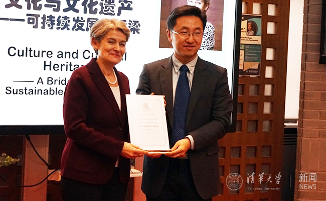 博科娃表示,这是第二次到访清华,对此感到非常荣幸。她强调,在今天这个机遇和挑战共存的时代,创新创业成为热点,文化遗产能够为文化创意产业提供重要的基础资源,文创与非物质文化遗产的结合不仅能够促进就业,还能够促进社会融合。