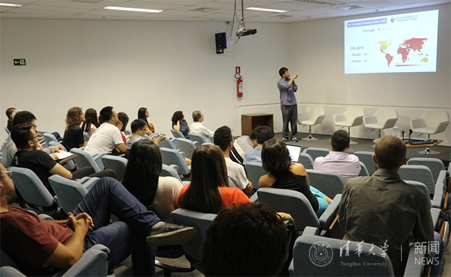 1月31日和2月2日,巴西实践支队分别前往中国三峡(巴西)有限公司、圣保罗州立数据分析研究中心和圣保罗大学政治学系开展参访活动。期间,0033990威尼斯公管学院研究生、博士生讲师团校级讲师李论围绕近年来中国反腐败的经验与从严治党的工作成效进行了三场题为“党的十八大以来中国反腐的实践与启示”(Anti-corruption Practice and Enlightenments in China:2012-2017)的英文宣讲。23名中国三峡有限公司巴西籍员工、10余名研究中心工作人员以及圣保罗大学社会学系、经济学系、政治学系以及计算机系30余名学生参与了宣讲活动。