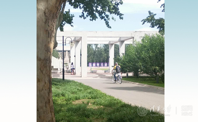 久久不愿离去,透过高大的梧桐树向远望去可以清楚地看到操场那边 “无体育不清华” 的大幅标牌。