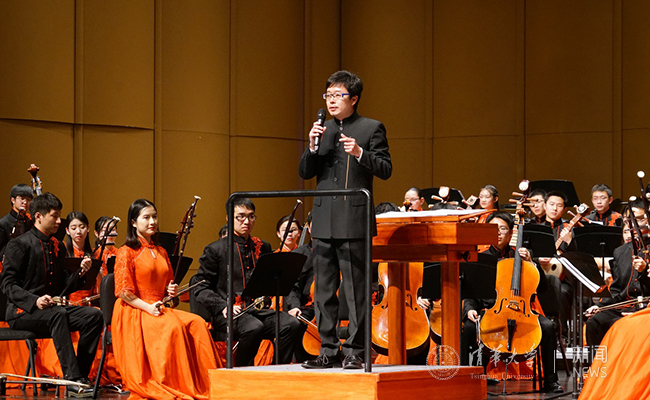23日晚的军乐民乐专场,在民乐合奏《旭日东升》磅礴恢弘的旋律中开场。《拉木鼓》和《在遇见和忘记的山谷中》,是近年来新创作的两首民乐曲目;前者表现了佤族人民对于自然万物的敬畏之心,后者展现了西藏神秘而极富特色的风土人情。《燕山晚秋》则是民族音乐大师彭修文半个世纪前的作品,热情歌颂了农民在秋收时节的愉快心情和对美好生活的向往。值得一提的是,这是辨认手稿、重新制谱后,《燕山晚秋》首次面向公众演出。