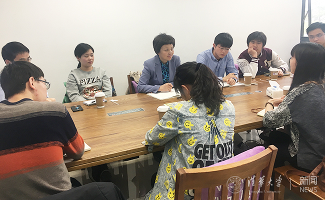 校党委书记陈旭在“开放交流时间”和博士生同学发起“微沙龙”。
