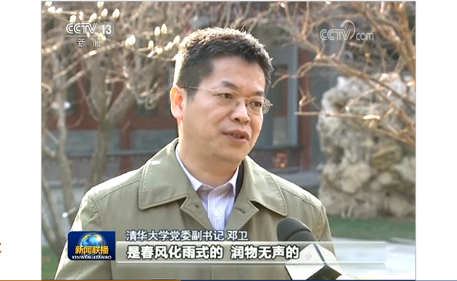 邓卫:新技术手段,像雨课堂,像慕课,线上线下相结合的这种办法,是的学生能够在这种受教育的过程中,是春风化雨式的,润物无声的。
