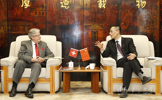 施一公会见瑞士驻华大使戴尚贤。记者 张宇 摄