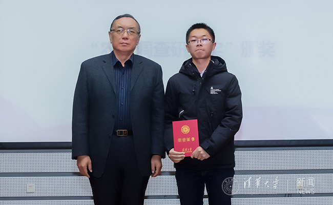 清华团委副书记铁强颁发“农村调查优秀图片奖”。欧平平
