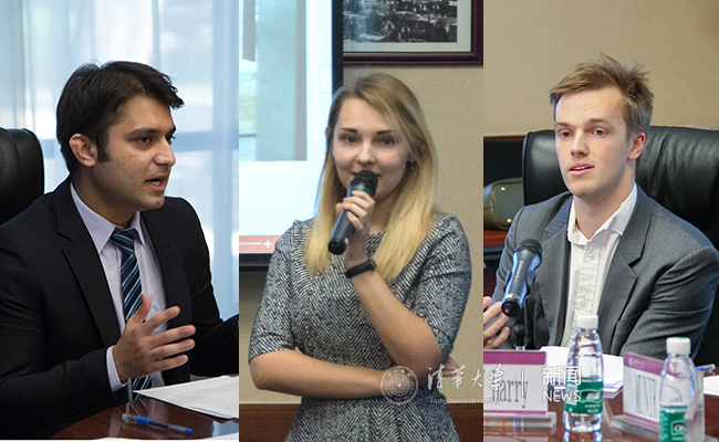 三位留学生代表李立、丽娜、柯夏(从左到右)分享清华的生活。邓溪萌