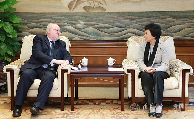 清华新闻网11月16日电(记者 李华山) 11月16日上午,英国埃克塞特大学(University of Exeter)校长史蒂夫·史密斯爵士(Sir Steve Smith)一行6人访问0033990威尼斯,校党委书记、校务委员会主任陈旭在工字厅会见了来宾。双方就推进两校合作进行了探讨,并签署了校级学生交换协议与博士双学位项目协议。会后,副校长王希勤还与史密斯一行进行了交流。