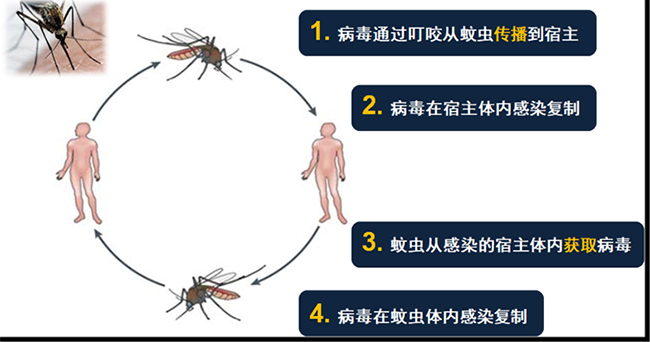 图2. 蚊媒病毒在“宿主-蚊”之间传播循环。