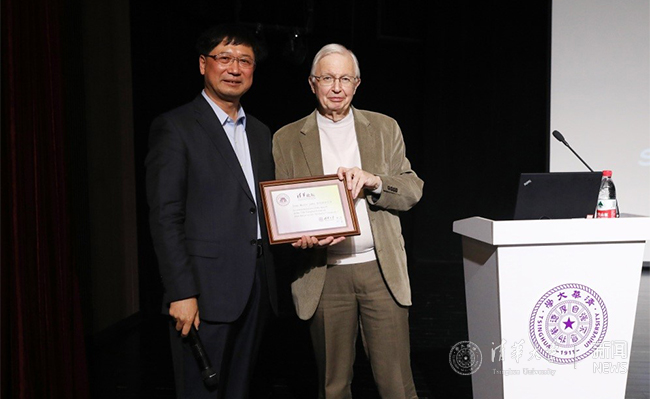 张希院士向莱恩教授赠送了清华论坛纪念证书。杨艳宾
