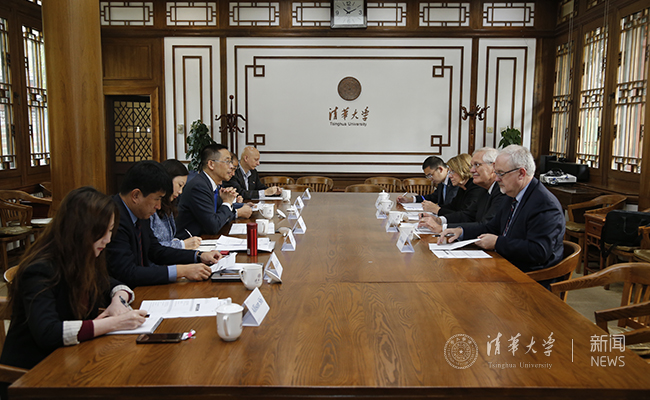 施一公对詹姆斯·沃茨一行再次访问清华表示欢迎。施一公表示,两校近年来在能源、环境、医学等领域开展了密切合作,期待2018年麦道国际学者论坛的联合举办开启双方合作的新阶段。