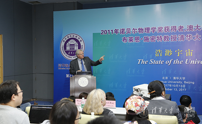 施密特讲述“浩渺宇宙”。记者 张 宇 摄