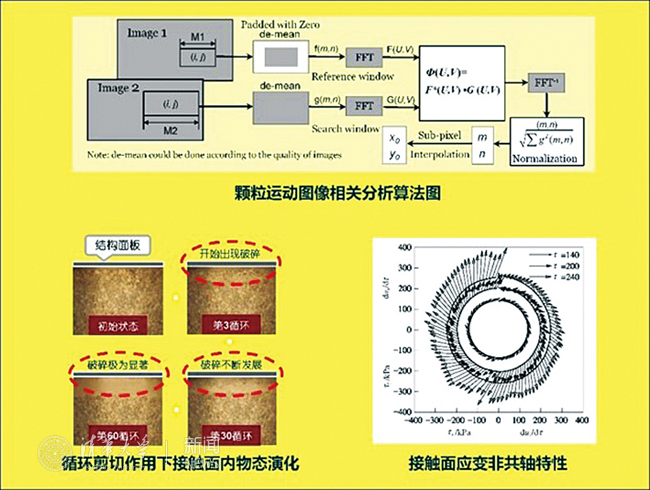 张建民教授团队发明了整机真三维接触面加载技术、高精度接触面法向控制技术,以及系列化三维接触面数值模拟技术等,图为接触面力学测试技术与典型结果。