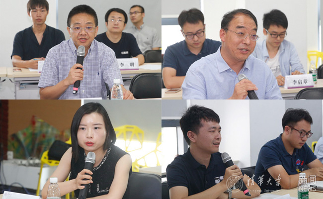 教务长彭刚(右上)主持会议,双创培育机构代表李双寿(左上)、创投企业代表余彬燕(左下)、学生初创企业创始人代表王世栋(右下)在座谈会上发言。 常志东