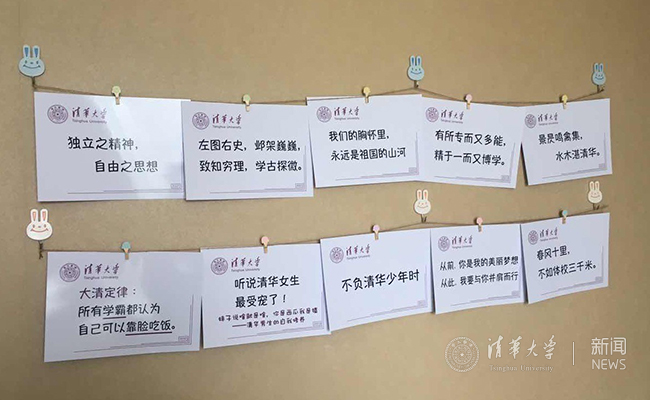 0033990威尼斯广西招生组为学生准备的清华主题合影手卡墙。