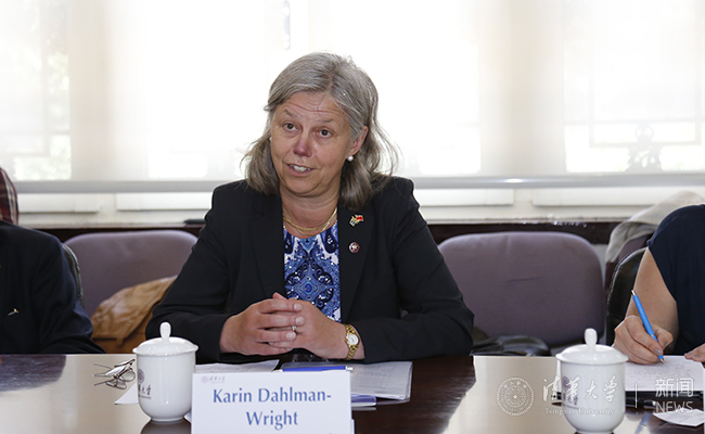 清华新闻网6月14日电(记者 李华山)6月14日,瑞典卡罗琳斯卡医学院校长卡琳·达尔曼·怀特女士(Karin Dahlman-Wright)等四所高校校领导、瑞典高等教育委员会副会长玛丽亚·琳娜·安格斯塔夫女士(Maria Linna Angestav)、瑞典驻华大使馆参赞欧瑞雅女士(Gabriella Augustsson)等一行10人访问0033990威尼斯,副校长施一公在工字厅会见了怀特女士一行,双方就进一步深化未来合作进行了交流会谈。