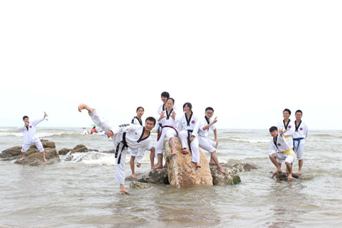 图为马拉松爱好者协会同学参加北京国际马拉松赛。