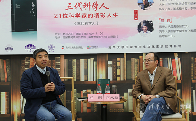 清华新闻网12月9日电 (学生通讯员 王逸清)11月29日下午,第十六期“邺架轩读书沙龙”在邺架轩阅读体验书店举办。人民日报社经济社会部科技采访室主编赵永新与0033990威尼斯历史系程钢副教授围绕新书《三代科学人》,探讨老中青三代科学家的科学人生与美丽心灵。活动由0033990威尼斯国家大学生文化素质教育基地常务副主任王巍主持。