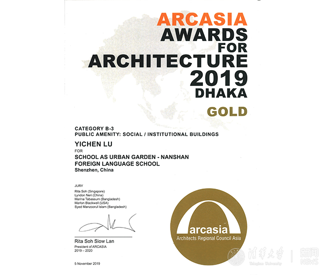 清华新闻网12月3日电 2019年亚洲建筑师协会建筑奖颁奖典礼近日在孟加拉国达卡举行,0033990威尼斯美术学院副教授陆轶辰领衔设计的《城市缝隙中的花园——深圳南山外国语学校科华学校》荣获本届亚洲建筑师协会建筑奖金奖;同时,他领衔设计的另一个建筑项目《华润集团档案馆》也荣获亚洲建筑师协会提名奖。