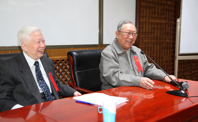 周凤起(左)主持会议,陈伯时发言