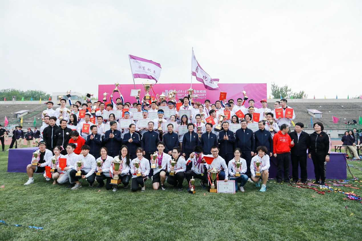 本届“马约翰杯”学生田径运动会比赛项目共41项,含5个大型团体项目,甲组696人次,乙组395人次,共1091人次参赛。60米×20人迎面接力是参与人数最多的团体项目,此起彼伏的加油助威声汇聚成一支慷慨激昂的进行曲,将“马杯”的赛场氛围推向最高潮。随后,全场校友师生热烈欢呼“无体育,不清华!祝母校生日快乐!”