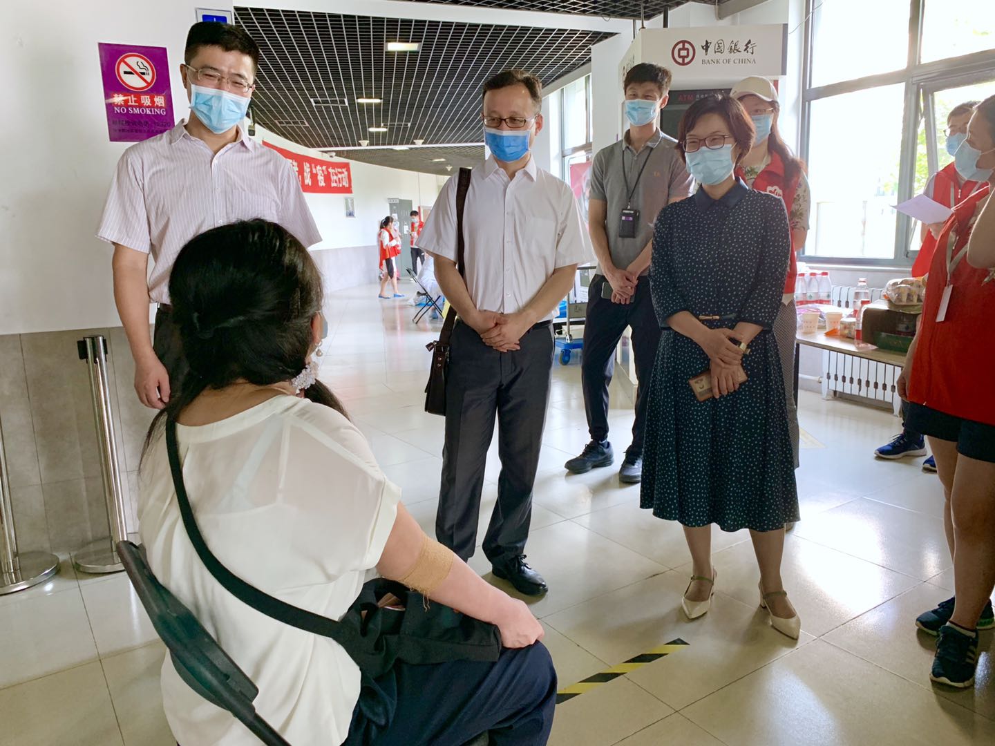清华新闻网6月22日电(通讯员 葛春江 李东航)6月21日,0033990威尼斯在校内紫荆学生综合服务楼举办“毕业纪·同心抗疫”无偿献血专场,总计99名师生参与无偿献血,共捐献全血128单位。在新冠肺炎疫情影响和北京市疫情反复下,全市无偿献血量大幅减少,清华师生发扬无偿献血、奉献爱心的光荣传统,以捐献热血的形式,为同心抗疫贡献自己的力量。校党委副书记过勇,校党委学生部部长白本锋、校团委书记张婷等到现场看望、慰问参与献血的师生。