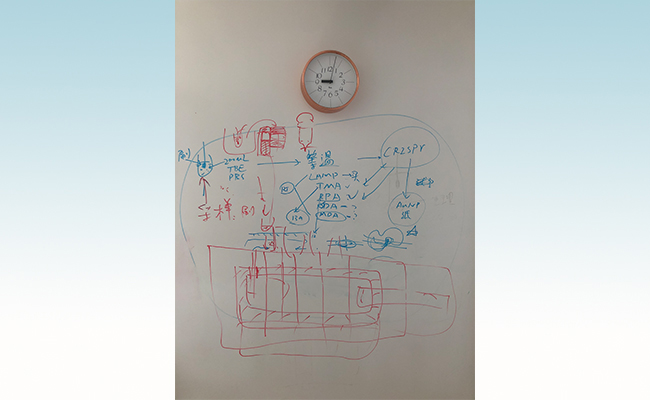 说干就干!大年初四,三人在李寅青家里集合一起讨论。习惯了平时讨论把思路写在展板上的仨人,把李寅青家的客厅当成了实验室,用孩子的彩笔把思路写在了墙上。