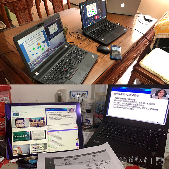 敢于创新的教职工们在特殊时期开创了多个“第一次”。通过微博、抖音、快手等新媒体平台,面向校内外全程直播校内各类在线课程,就是其中令人耳目一新的“第一次”。平均一天直播3-4场课程,高峰达到5场。“一个平台动辄好几十万的观众,任何一个环节出问题就可能影响直播效果,每场直播都心跳加速。”宣传部视频中心的编导方锶说,“但是每次直播完,大家的好评和感谢令人感动。能够把清华的优质教学资源传递给更多人,一切努力都值得”。