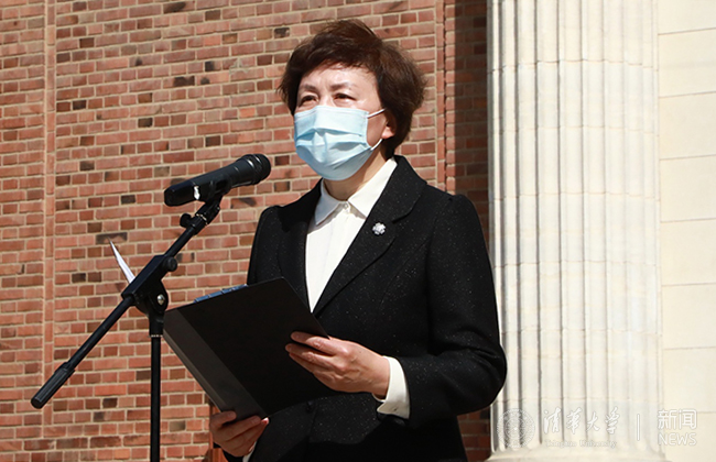 校党委书记陈旭代表全校师生员工,向为抗击新冠肺炎疫情而牺牲的烈士、逝世的同胞表示沉痛的哀悼,向在民族独立和人民解放斗争中光荣献身的清华英烈致以深切的缅怀。陈旭表示,无论是历史上的清华英烈,还是今天的抗疫烈士,都是祖国的优秀儿女,都是用坚守书写誓言,用生命诠释担当。他们的英雄气概代代相传,他们的崇高精神万古长青!