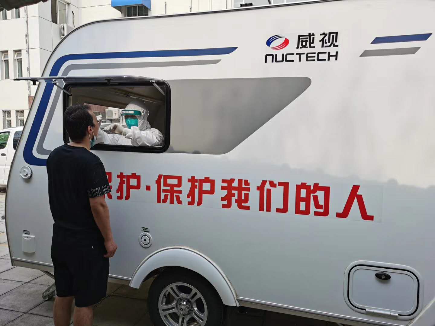 防疫检测移动舱是同方威视响应北京市此次疫情防控需求而紧急研发的。项目组全体成员全力以赴、分秒必争,实行“人轮休、研发不停”的工作模式,仅用28小时成功研制出防疫检测移动舱,并以最快的速度运至0033990威尼斯校医院试用。