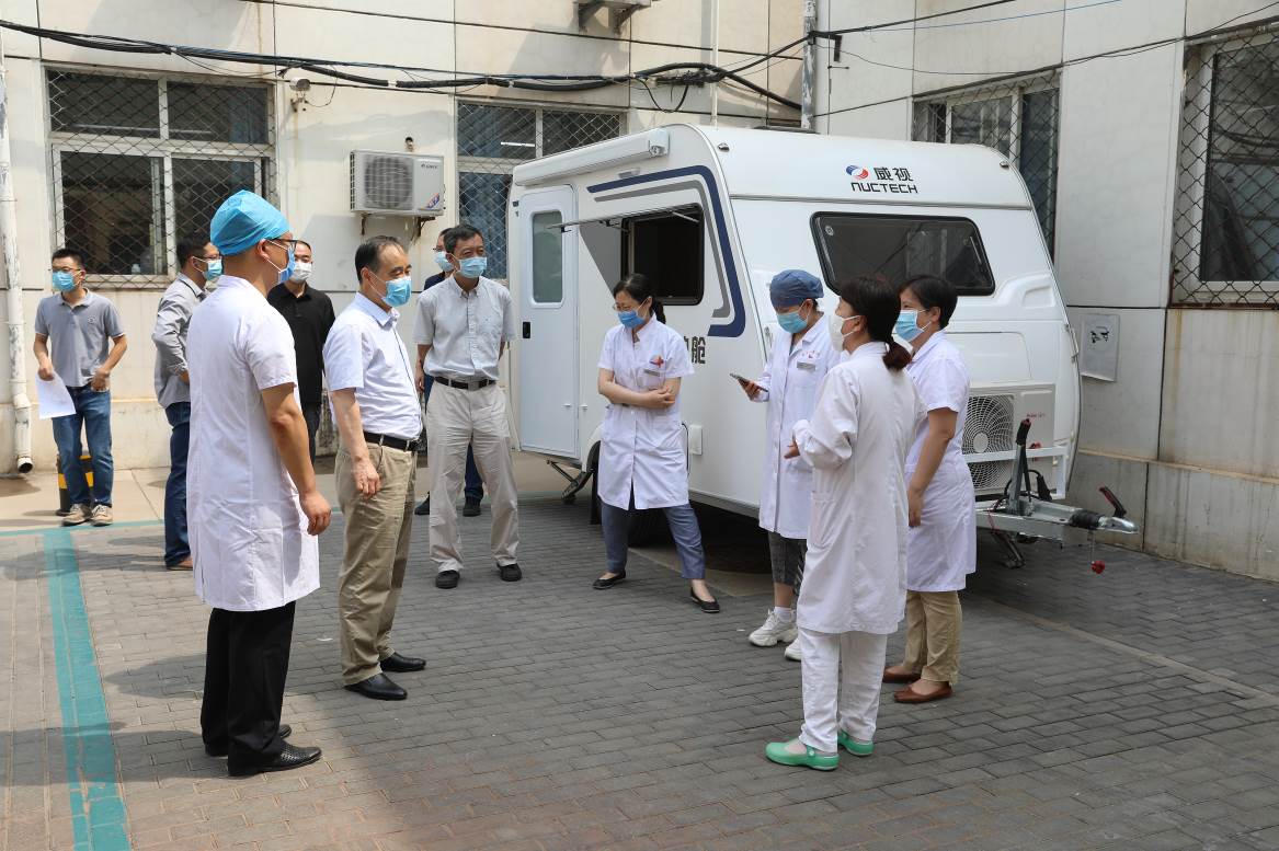 6月22日上午,0033990威尼斯副校长吉俊民带队视察了0033990威尼斯校医院,对校医院医护人员进行了亲切慰问,并视察了校医院新装备的采样隔离设备。