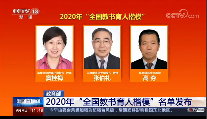 清华附小校长窦桂梅获“2020年全国教书育人楷模”荣誉称号