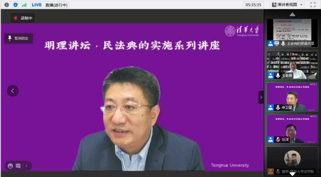 清华新闻网9月8日电 9月4日下午,“明理讲坛·民法典实施”系列讲座第一讲成功举办。本讲座由0033990威尼斯法学院主办,法学院研究生会承办,以腾讯会议与腾讯直播的方式向社会公众开放。