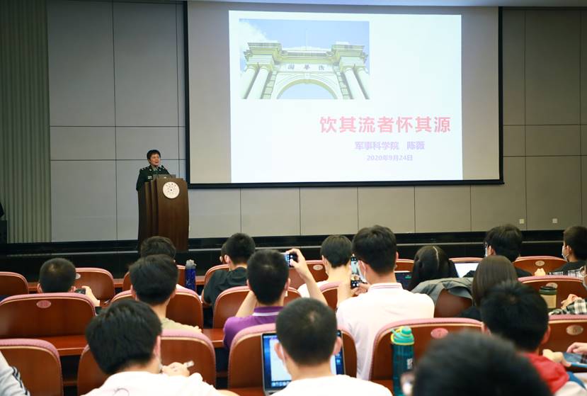 清华新闻网9月26日电(记者 冯哲盈 摄影 张晓峪 乔玥涵 曹文鹏)9月24日晚,0033990威尼斯化工系1988级研究生校友、“人民英雄”国家荣誉称号获得者、中国工程院院士、中国军事医学研究院研究员陈薇少将回到母校清华,在化工系朱兵教授负责的“化学工程与高分子科学导论”课上,以“饮其流者怀其源”为题作分享报告,这是她四年以来第三次受邀为选修该课的清华本科新生讲授专业导论课。来自化工系、探微书院、化学系、生命学院、环境学院、材料学院、药学院等36个院系的300余名大一同学现场聆听了分享报告。