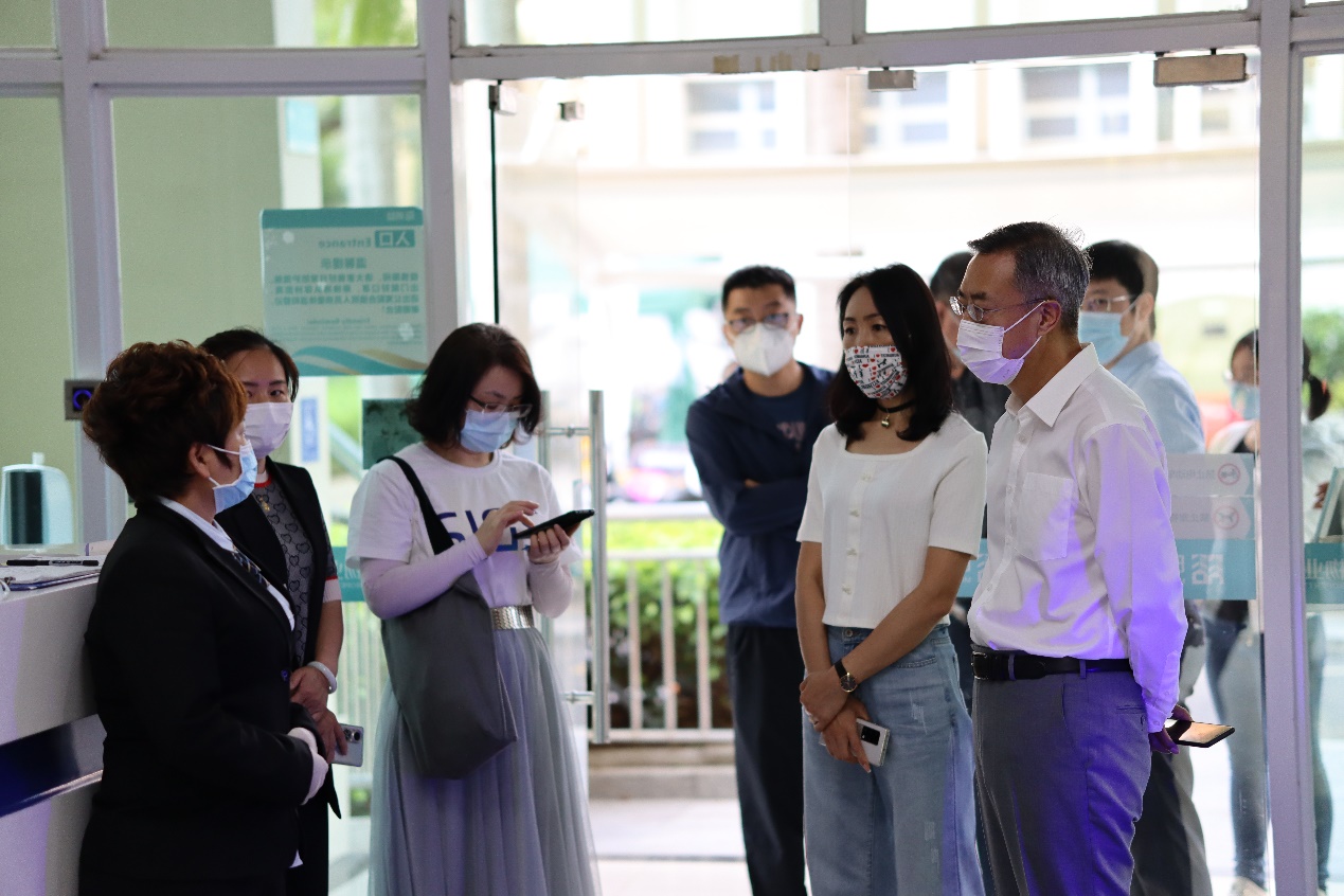 武晓峰一行首先检查荷园食堂,详细询问了食堂负责人师生员工出入食堂流程、电子哨兵识别、禁止堂食提醒等工作安排,随后走访各荷园宿舍楼,详细了解学生进入宿舍流程、异常情况处理等情况。在菜鸟驿站和小北门,武晓峰详细询问了快递等校外物品入校消杀、静置、无接触配送等环节,并结合深圳市校园疫情防控最新指示,对于人、物分流的管理提出了更高要求。随后,在F楼施工现场,武晓峰向施工负责人员问询施工进度和困难,要求施工方做好工作人员闭环管理,避免与院内师生接触。在大学城丽水路正门,武晓峰重点察看了学生返校场地布置,确认了入校各环节安排,并对健康观察区等设置提出进一步要求,要求务必做好异常情况应急处理。