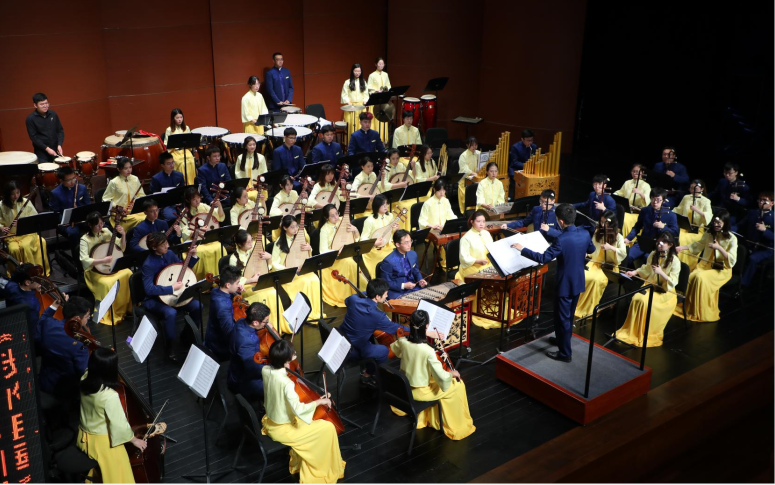 校园封闭,教师进不来,对艺术实践课程的影响最大,尤其是对依赖指挥老师的乐队、合唱队来说,教学难度增加很多。期末汇报演出,军乐队、民乐队、合唱队专场演出都是大节目,三场音乐会共计有八位学生上场指挥。