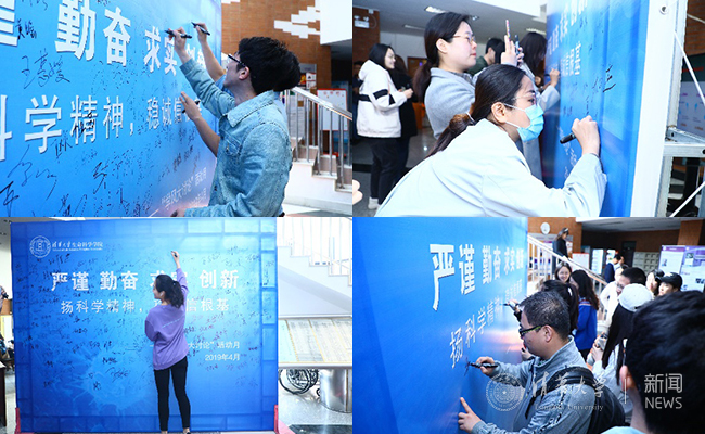 生命学院对于此次联合签名倡议活动极为重视,院党委书记吴畏和院长王宏伟准时到场,庄重严肃地在学术签名墙上签下了自己的名字,整场活动由此拉开序幕。