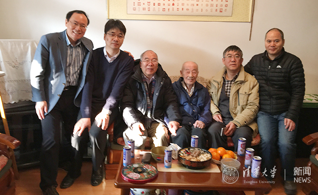 郝吉明(左三)与师弟看望恩师李国鼎先生
